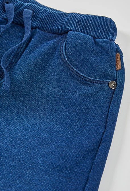 bermuda punto efecto vaquero color azul, lleva goma en cintura con cordón ajustador.
