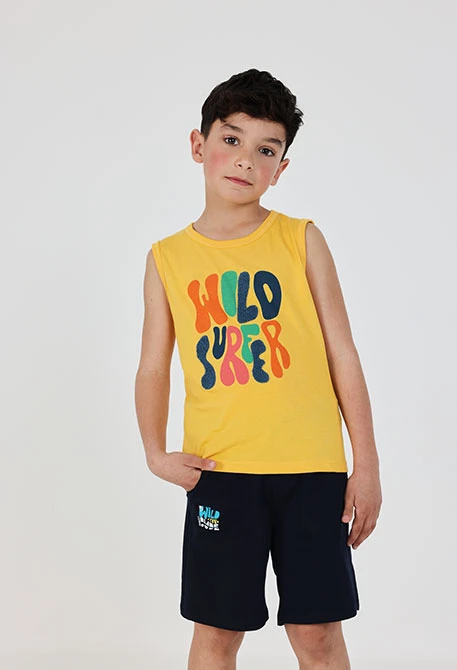 Bermudas de punto azul marino para niños, ideales para la temporada de primavera y verano. Confeccionadas en tejido suave y cómodo, presentan un diseño sencillo con detalles de un motivo que recuerda a una tabla de surf. La cintura elástica con cordón ajustable asegura un ajuste cómodo, son perfectas para actividades al aire libre. El color vibrante añade un toque alegre a cualquier conjunto, combinando perfectamente con camisetas ligeras para un estilo casual y desenfadado.