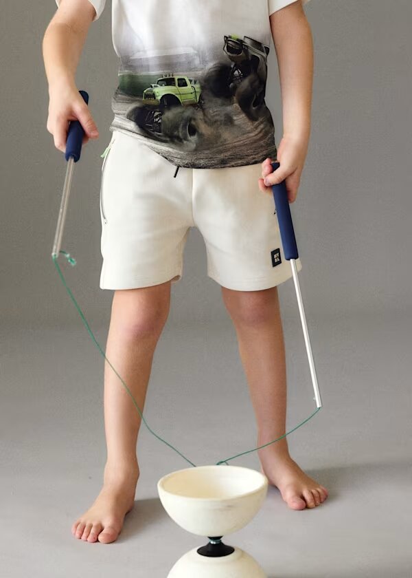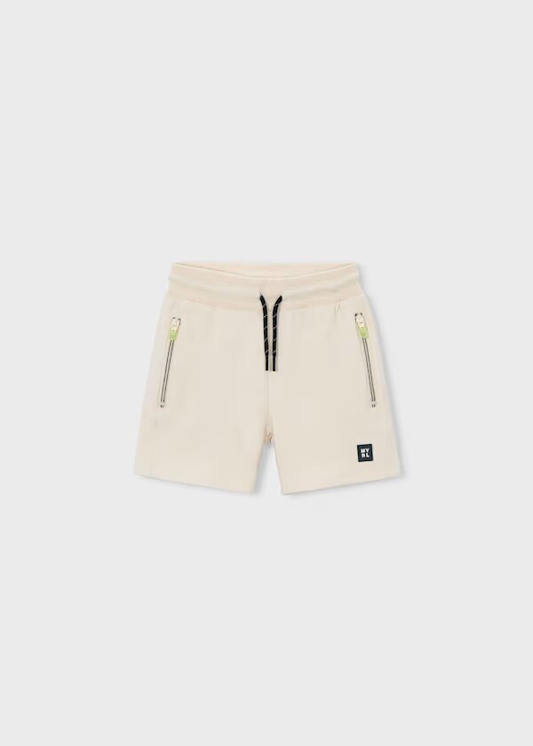 bermuda de punto con cremalleras en los bolsillos en color crudo.