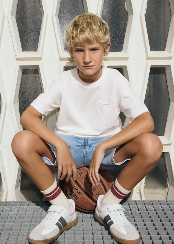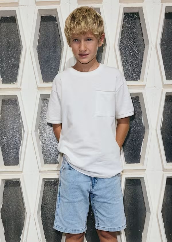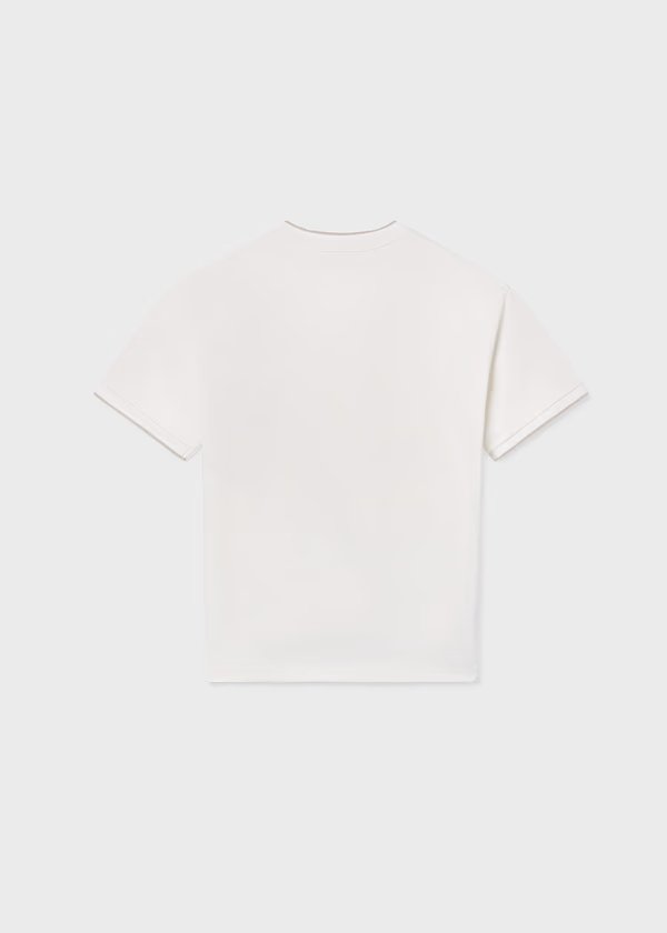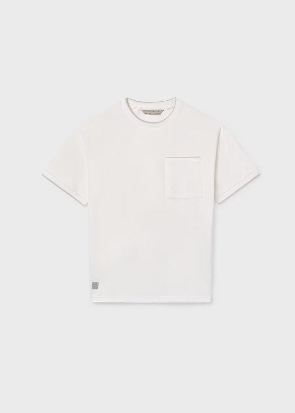camiseta manga corta color nata con bolsillo, tejido de granito.