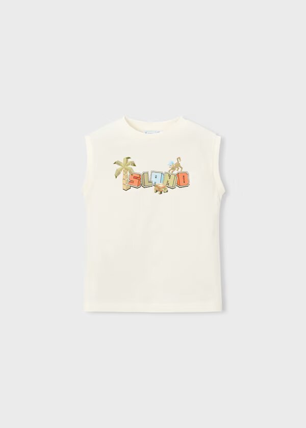 camiseta de tirantes color nata, serigrafía minecraft.