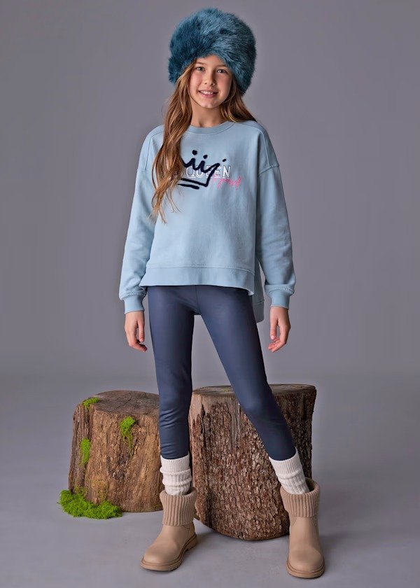 Sudadera de manga larga para chica. Cuello redondo. Elementos de adorno: bordado, serigrafía corona.