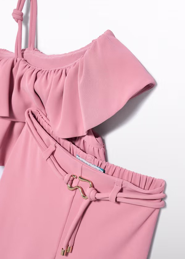 conjunto top con volantes  asimétrico y pantalón ancho color orquídea, ideal para cualquier evento.