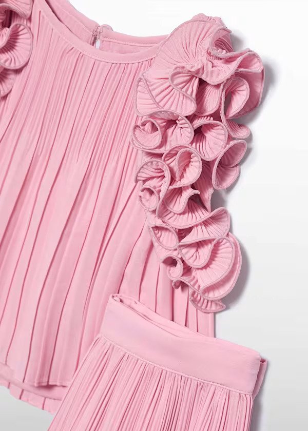 conjunto pantalón rosa gasa plisado, ideal para cualquier evento.