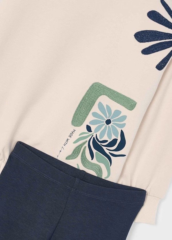 Sudadera de manga larga para niña. Cuello redondo. Silueta de líneas relajadas con hombros caídos. Bajo elástico para un mejor ajuste. Elementos de adorno: bordados, serigrafía (print).