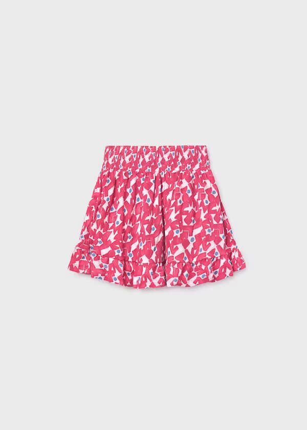 falda estampada color cereza, goma en cintura, con un volante en la parte de abajo para chica.