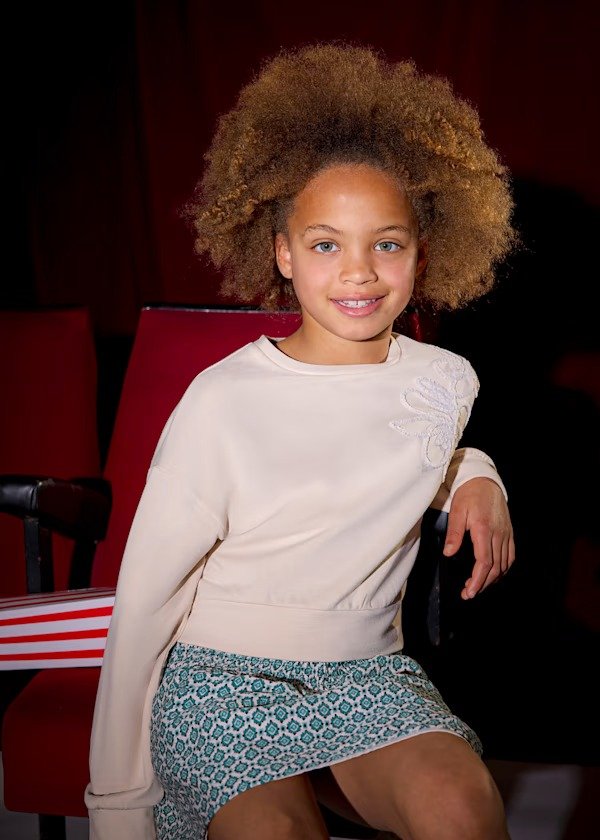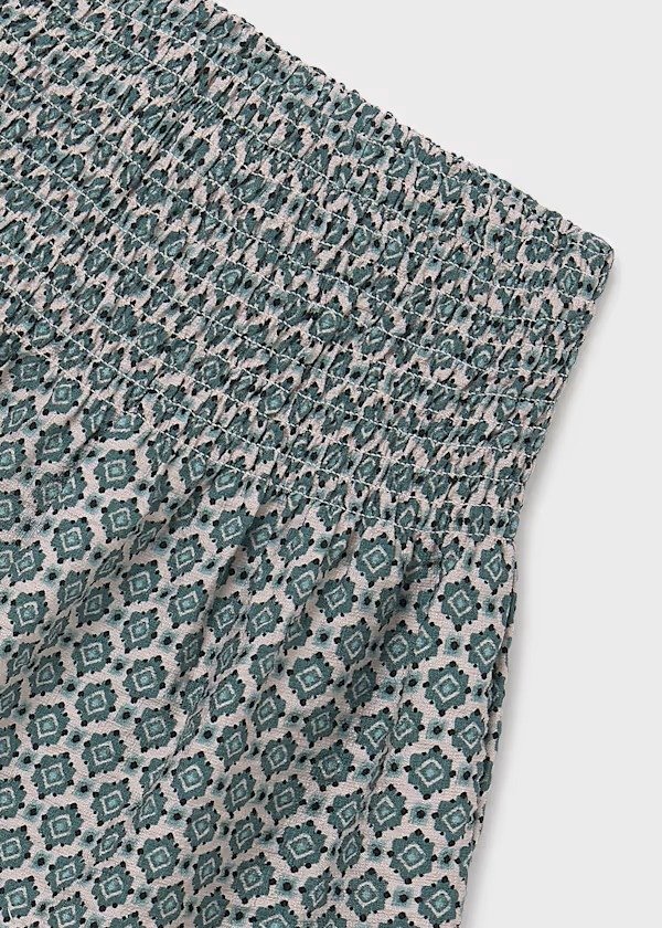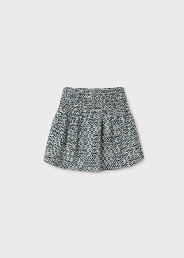 Falda para chica. Cinturilla elástica. Delantero fruncido. Este modelo lleva detalles de nido de abeja. Diseño estampado.