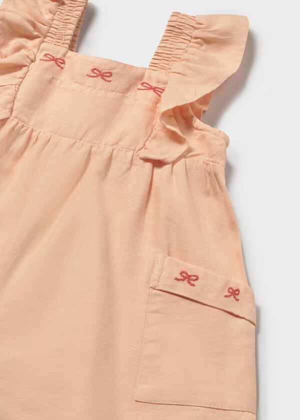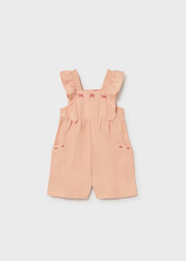 mono corto color mandarina, lleva unos volantes en los hombros, abrochado con cremallera por detrás.