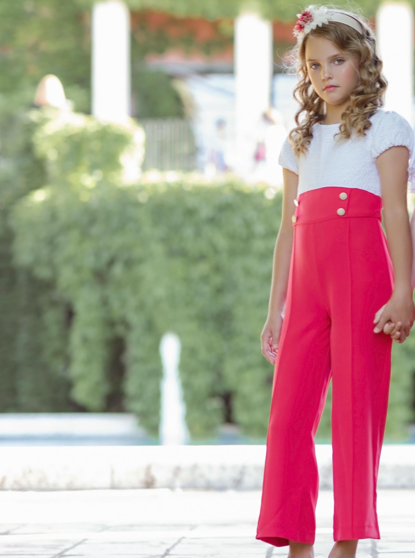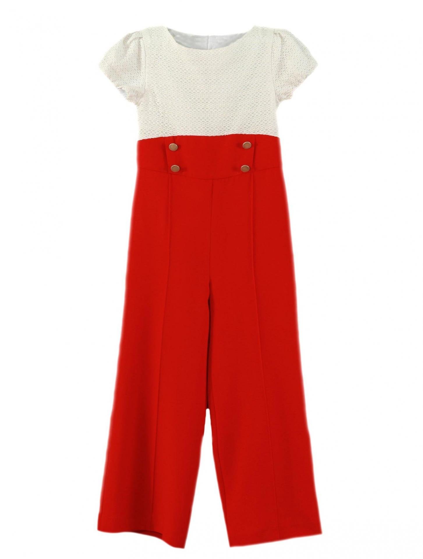 mono largo con el cuerpo blanco y pantalón rojo, lleva unos botones a modo decorativo. Ideal para cualquier evento de esta primavera.