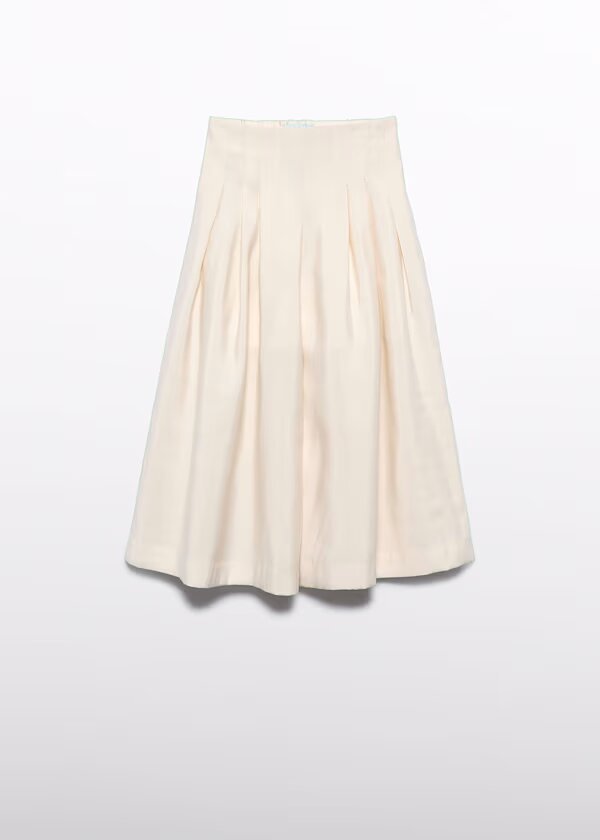 pantalón largo ceremonia , modelo fluido con tablas en color beige.