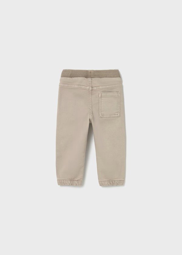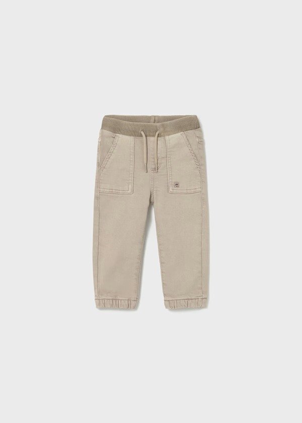 Pantalón largo de tipo jogger para bebé, holgado en la parte superior y más estrecho a medida que baja hacia el tobillo. Perfecto para looks sport, que reflejan la influencia de lo deportivo en la ropa de calle. Cinturilla elástica con cordón. Cómodo tejido de sarga de gran resistencia. Bajo elástico para un mejor ajuste. Bolsillos funcionales en la parte delantera. Bolsillo trasero funcional.