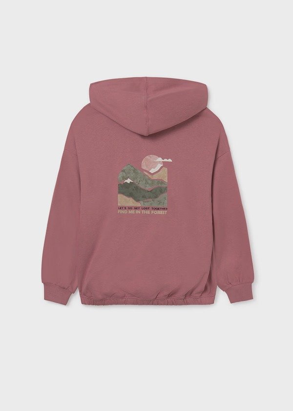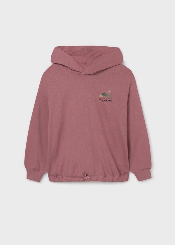 Sudadera de manga larga para chica. Cuello con capucha. Diseño de corte largo. Diseño con cordón regulable en el bajo para un mejor ajuste al cuerpo. Elementos de adorno: serigrafía (print). Se trata de un artículo de diseño unisex de gran versatilidad por la neutralidad de sus tonos y su forma.